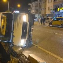 In Serik hat ein Taxi einen Kleintransporter auf die Seite gelegt.