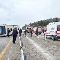 Auf der Fernstrasse D-695 nach Konya ist ein Bus auf die Seite gekippt.