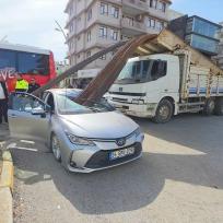 In Manavgat ist Baustahl von einem Lastwagen auf ein Auto gerutscht.